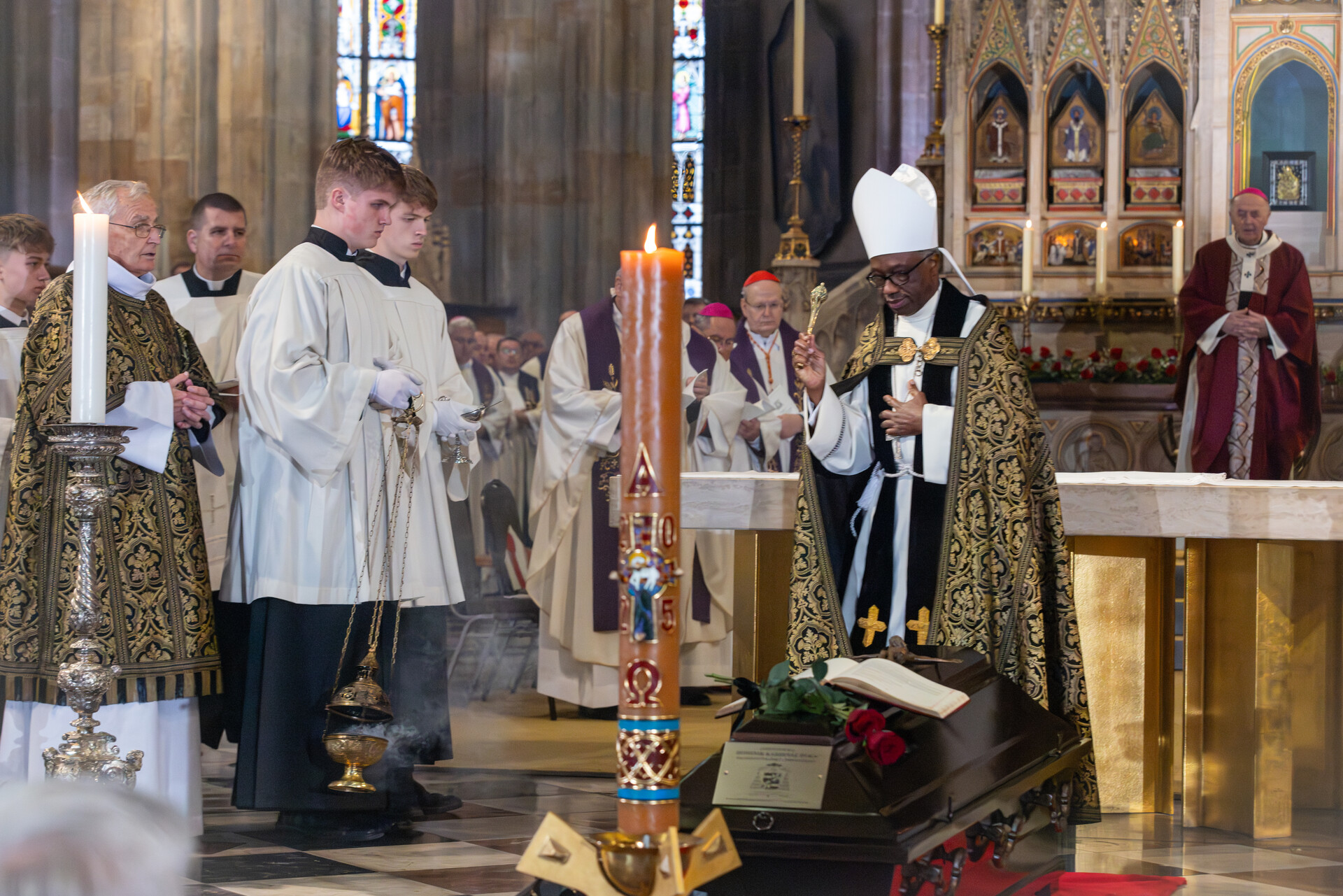 At the request of the deceased cardinal, the Choir of Jews from Verdi’s opera Nabucco rang through the cathedral while his coffin was being carried. The largest church bell, Zikmund from 1549, the heaviest bell in Bohemia, also rang. Its 27 strikes were heard, the number of years of His Eminence’s episcopal service.